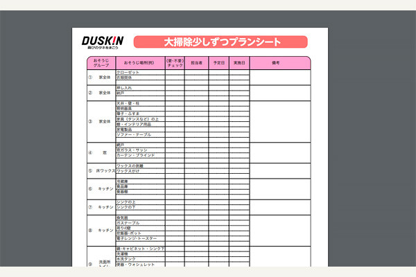 Duskin published a printable plan sheet for Japanese year-end cleaning. It maps tasks, areas, owners, and dates so you stop winging it—and reminds you to buy supplies first.
