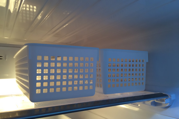 Instagram fridge-storage tags were full of Daiso Color Life baskets I couldn’t find. I dug into the actual manufacturers and standardized on Inomata baskets—stocked at nearly every 100-yen chain with tons of size options.